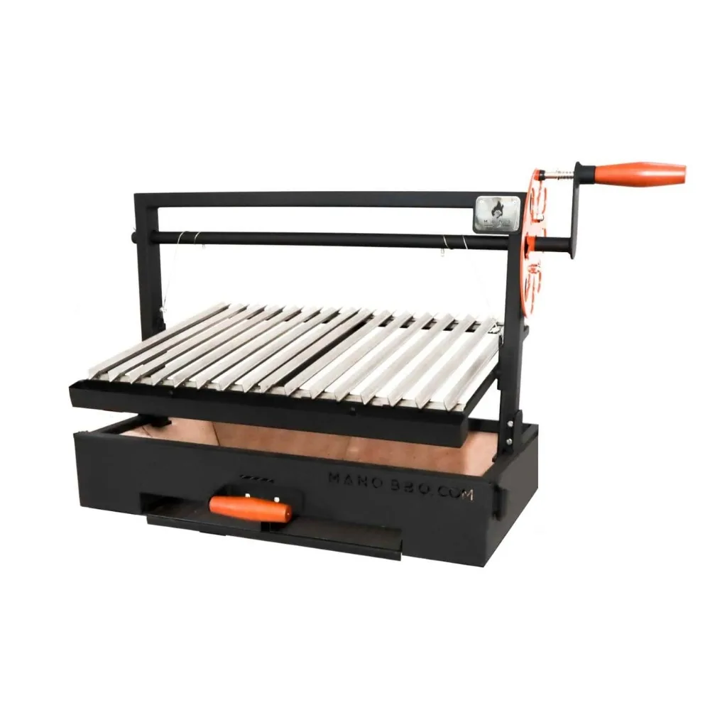 El asador empotrable Mano Parrillero está diseñado para quienes disfrutan de la auténtica experiencia del fuego y desean integrar un equipo robusto y funcional en su espacio. Este asador se empotra en una estructura fija, ofreciendo solidez y elegancia sin perder ninguna de las funciones que caracterizan al Mano Parrillero.