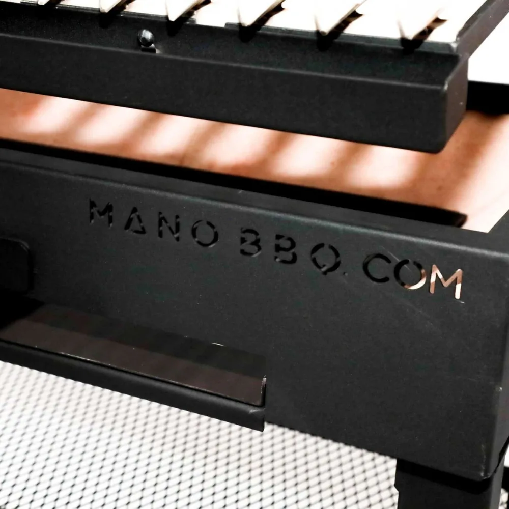 Como complemento, el Mano Parrillero trae zonas calientes con rejilla de acero ideales para mantener botellas o utensilios, y superficies laterales que aumentan la comodidad del parrillero al momento de preparar cada corte.